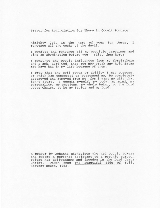biblical restoration ministries - Renunciation for Those in Occult Bondage
